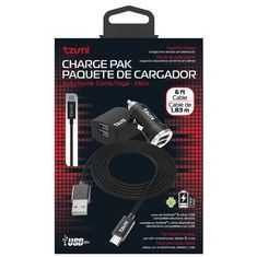 CABLE CARGADOR C/ADAPTADOR AUTO CASAEl paquete de cargador incluye un elegante cable de malla con una amplia longitud de 180 metros. Ancho 11.43 cm Color Negro Profundidad 29.0322 cm Peso …