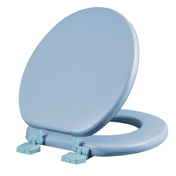 Asiento sanitario de plastico redondo en color blanco. Marca BEMIS. Frente abierto. Bisagras ajustables que aseguran adaptacion al sanitario. (131992)