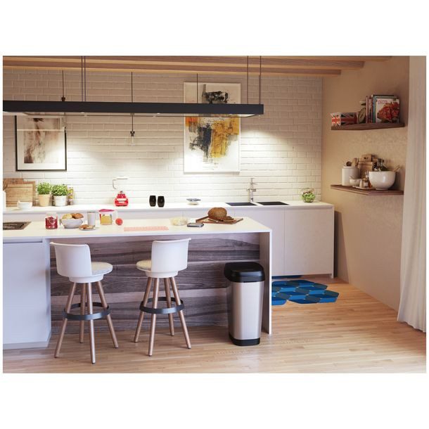Largo 62.4 cm Ancho 43.4 cm Profundidad 30.9 cm Material Acero inoxidable y resina Color Negro Acabado Mate Capacidad / Tamaño 50 L