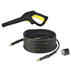 Lanza vario Power. Una boquilla rotativa. Filtro interno de agua y una botella de detergente universal para el sistema plug ´n´clean. Regulación continua. Si – pistola. Manguera de alta presión. 2 lanzas: rotativa y variopower (ajustable). Filtro de agua interno. Accesorio quick connect y detergente universal (1 lt). Reduces tiempo limpieza: Karcher limpia 50% más que la competencia. Sistema Plug n’ Clean. Sistema de detergente Plug n’ Clean (para cambio rápido y sencillo) Detergente Universal 1 Lt incluido. Gancho de soporte para accesorios. Carrete porta manguera integrado en mango. Quick Connect.